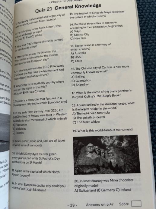 Knjiga za kvizase, pitanja i odgovori.
