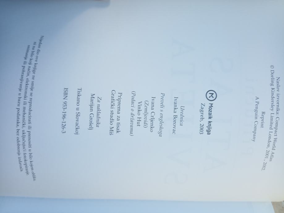 Knjiga priručni atlas svijeta. Izdavač mozaik knjiga.Očuvana - stanje kao novo
