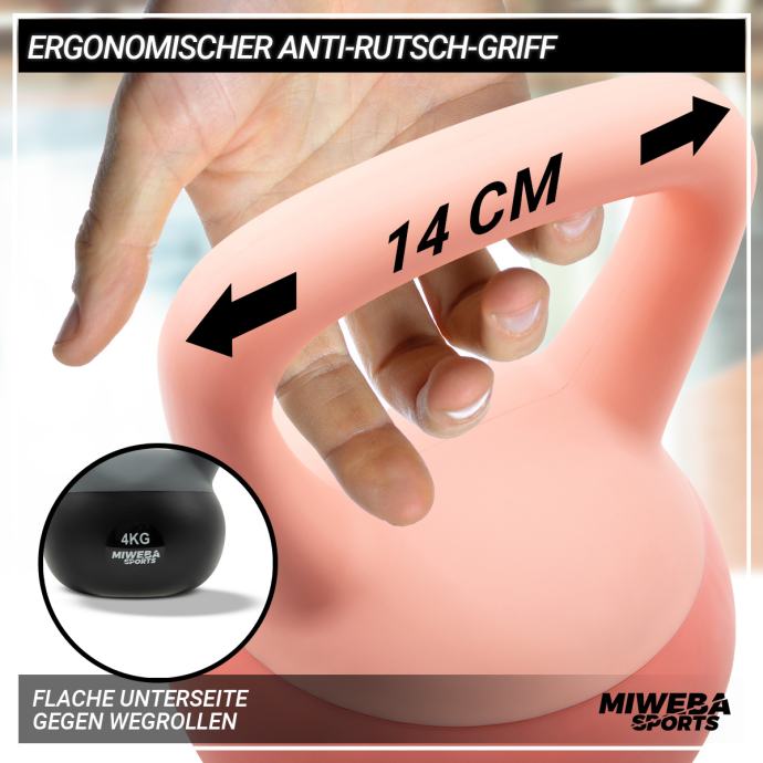 S Miweba Sports Girjama KB100 dobivate potrebnu raznolikost vježbi. Bilo da se radi o treningu izdržljivosti, poboljšanju koordinacije ili povećanju mišićne snage: s girjama nema granica. S 4, 6, 8 ili 10 kg pronaći ćete pravu težinu. Više boja ružičasta, tirkizna ili siva. Ravnomjerno oblikovana na dnu, girje se nikada neće otkotrljati od vas. Zahvaljujući protukliznoj ručki, uvijek sigurno leži u ruci - bez obzira na to koliko je sport znojan. Mekana površina čini girju nježnom na podu i tihom.