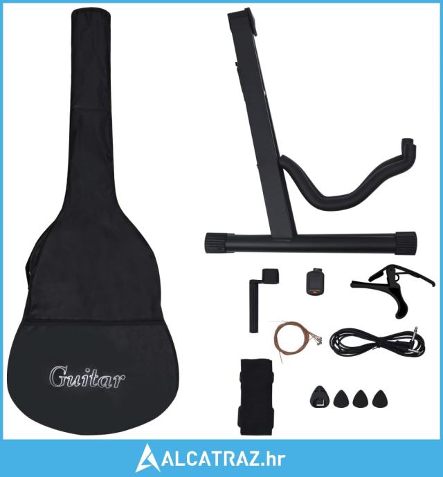Podešivač vam može pomoći da bolje naštimate žice gitare, dok kapodaster može pomoći u podešavanju tona gitare. Tri trzalice upotrebljavaju se za trzanje žica i mogu se staviti u držač. Obično su zamjena za prste, ali možete svirati i prstima. Ručica za žice, kao koristan alat, olakšava postupak zamjene žica. Priložena futrola s remenom savršena je za putujuće glazbenike i lako spremanje. Uz to, možete smjestiti svoju gitaru u držač, što je vrlo praktično.