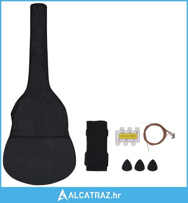 Naša klasična gitara odličan je instrument za djecu, početnike i amatere. Uz gitaru, set dolazi s futrolom za gitaru, remenom, trzalicama, hvataljkom tona i kompletom gitarskih žica.