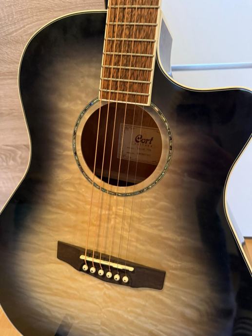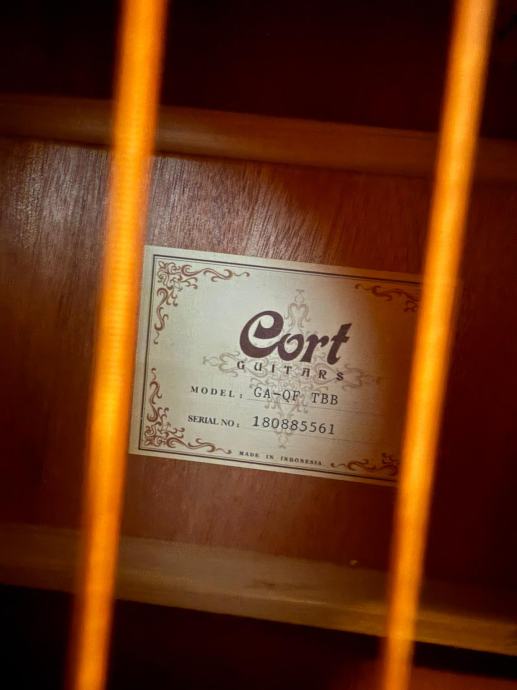 Prodaje se rabljena akustična gitara Cort guitars, model: GA-QF TBB. Očuvana i u dobrom stanju, prodaje se jer se više ne koristi. Uz gitaru dolazi torba za gitaru, stalak za gitaru, trzalica, štimer i kapodaster.