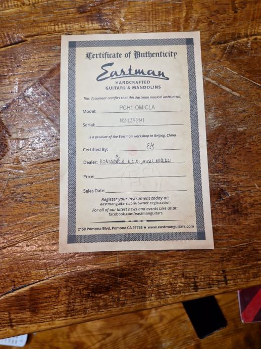 Prodajemo odličnu ispravnu akustičnu gitaru Eastman PCH1-OM-CLA. Serijski broj M2428291. Gitara dolazi sa kuferom.