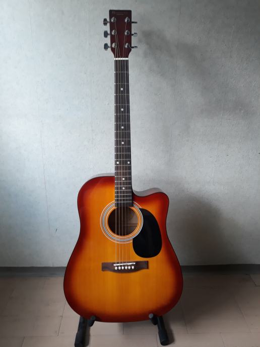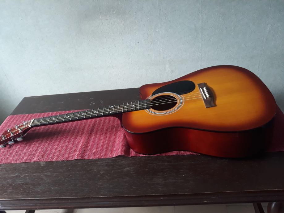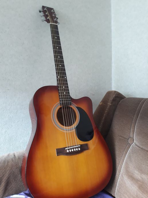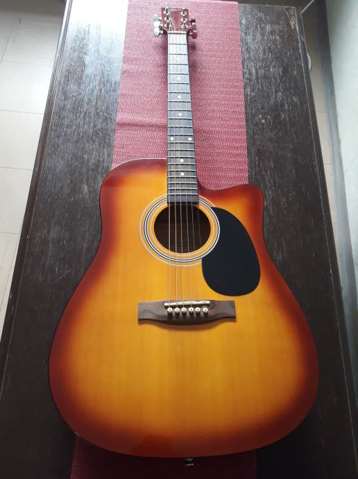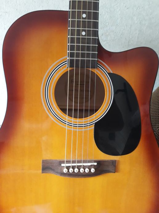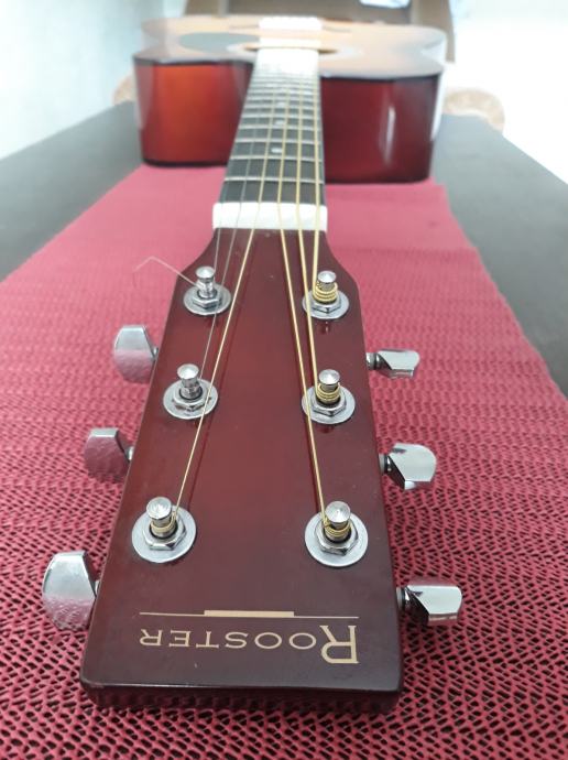 Akustična gitara Rooster u odličnom stanju, jako malo svirana. Idealna gitara za početnike. Uz gitaru dolaze i torba za gitaru te pojas za gitaru.
