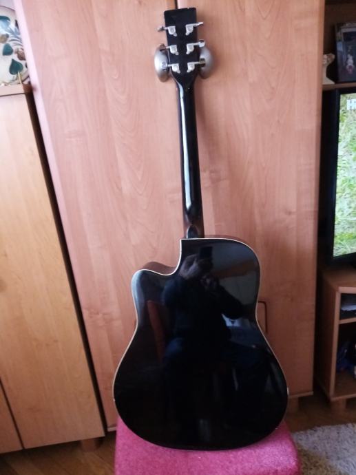 Gitara za sve prilike (kučne fešte izlete i slično) rabljena u dobrom stanju. Vrlo glasna. Vrat je tanji kao na električnoj tako da mogu svirati i mladi i stariji. Uz gitaru dobijete futrolu sa naramenicama. Za kontakt molim SAMO POZIV tel. 098 63 33 91