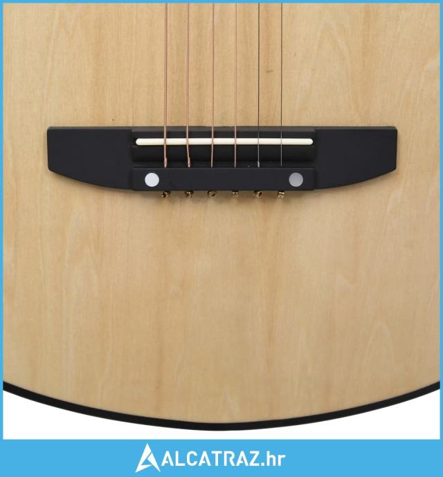 Ova gitara napravljena je od masivnog drva lipe sa 6 žica. Izvrsna kvaliteta zvuka i predivni klasični dizajn čine je vrlo vrijednom. S vratom od 63 cm, ova akustična gitara ima sve što vam je potrebno kako biste postali odličan gitarist.