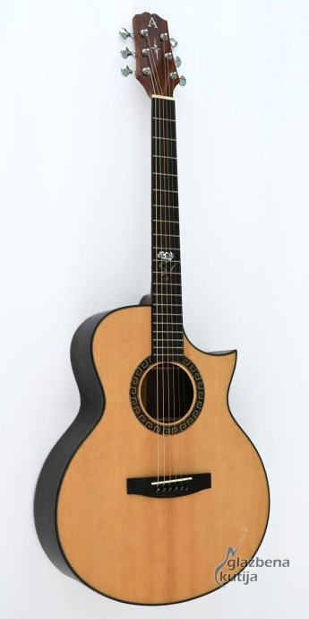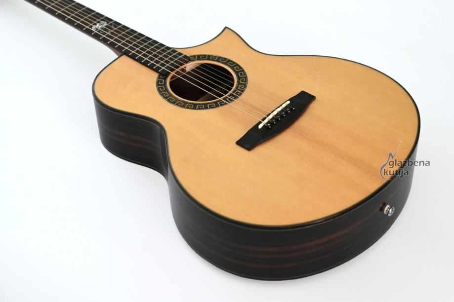 Akustična gitara grand auditorium oblika s punom prednjom pločom od smreke.