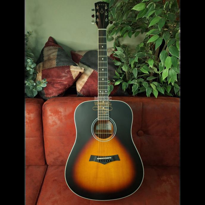 ARROW Gold Tobacco Burst Dreadnought je akustična gitara dreadnought oblika savršena za svakoga tko traži kvalitetan, snažan zvuk i visoku udobnost sviranja.