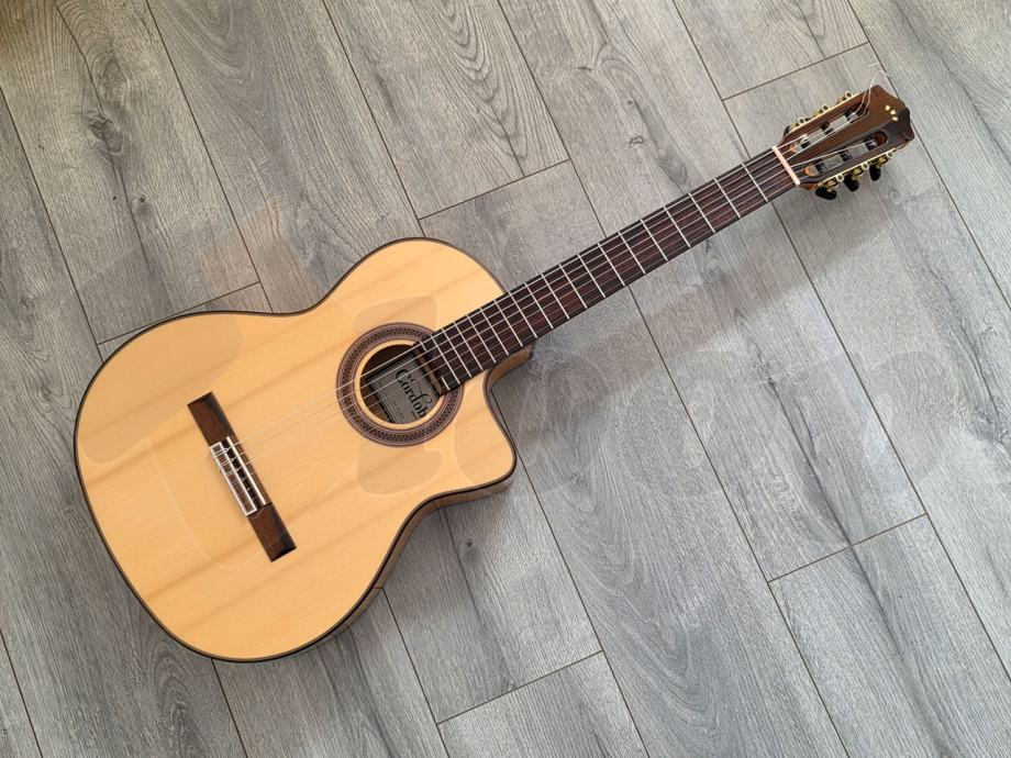 Bracing/Build: Spanish fan bracing, Flamenco style build, cutaway electric
