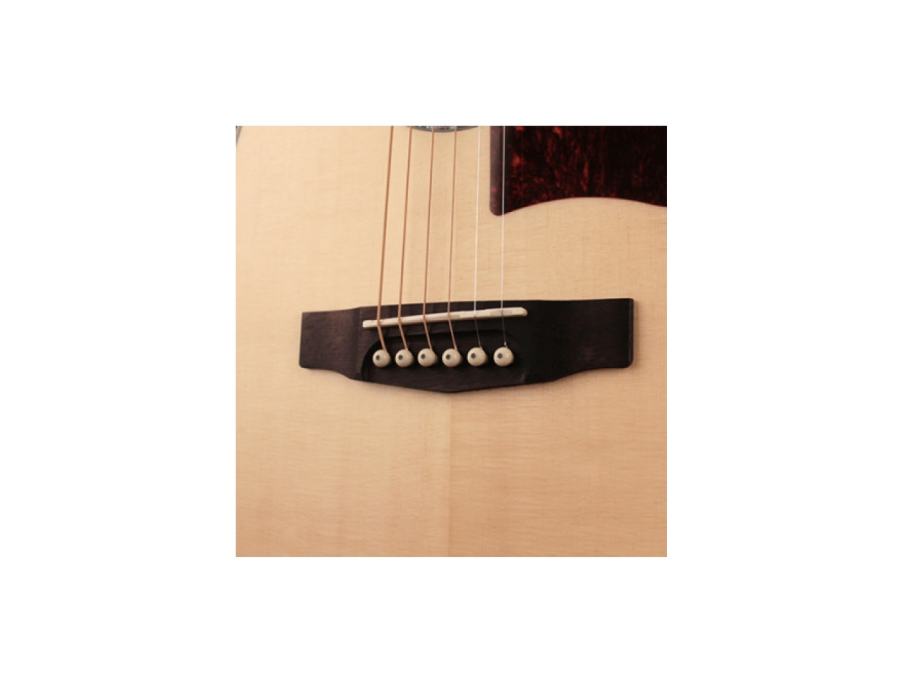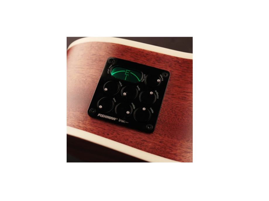 Cort GA10F elektro-akustična gitara s masivnom prednjom pločom od smreke i stražnjom pločom od mahagonija. Opremljena je Fishman Ink elektronikom s ugrađenim štimerom.