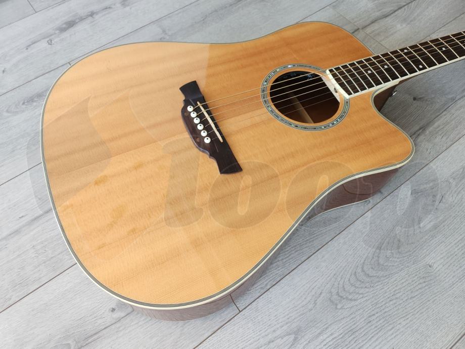 iznimno očuvana elektro-akustična gitara s punom pločom od Engelman smreke, bez ikakvih tragova upotrebe. Elektronika: S-1 Preamp.