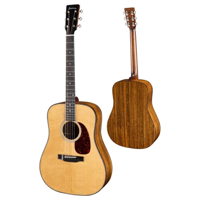 Model Eastman E3D Deluxe je elektro-akustična gitara iz Eastman obitelji ručnog rađenih izuzetno kvalitetnih gitara i mandolina. Model dolazi s prednjom pločom od pune sitka smreke, tijelom od punog ovangkol drveta te luksuznom podstavljenom Eastman torbom.