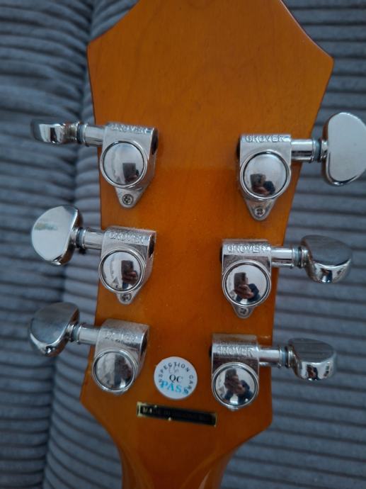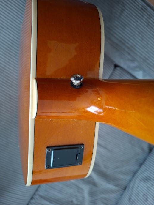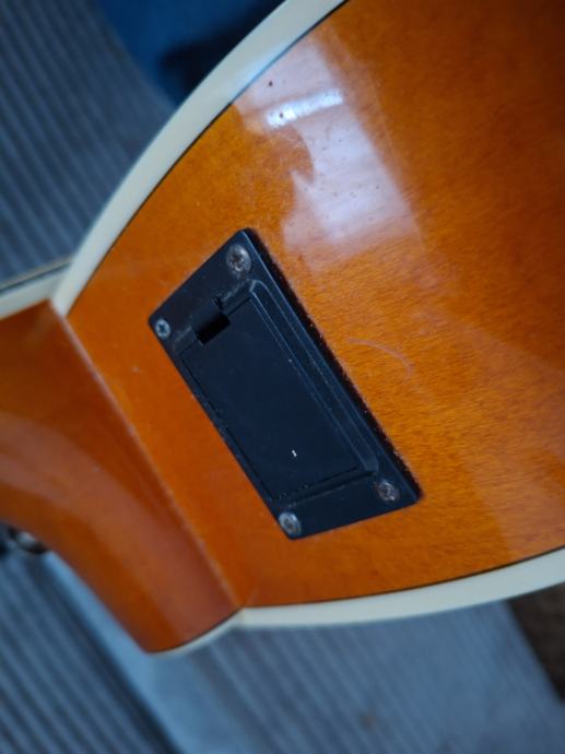 U odlicnom stanju, modificirana na nacin da je ugradjena kutijica za bateriju s vanjske strane, umjesto unutra kako je u originalu. Gitara je u odlicnom stanju.