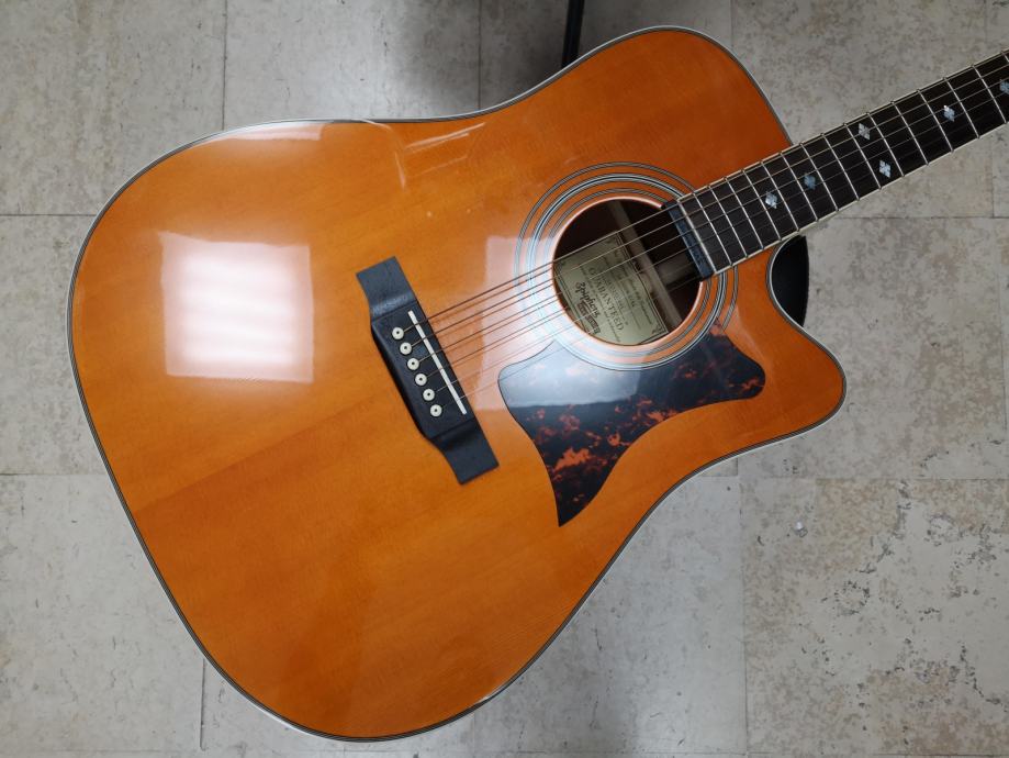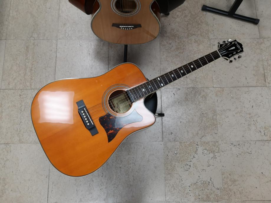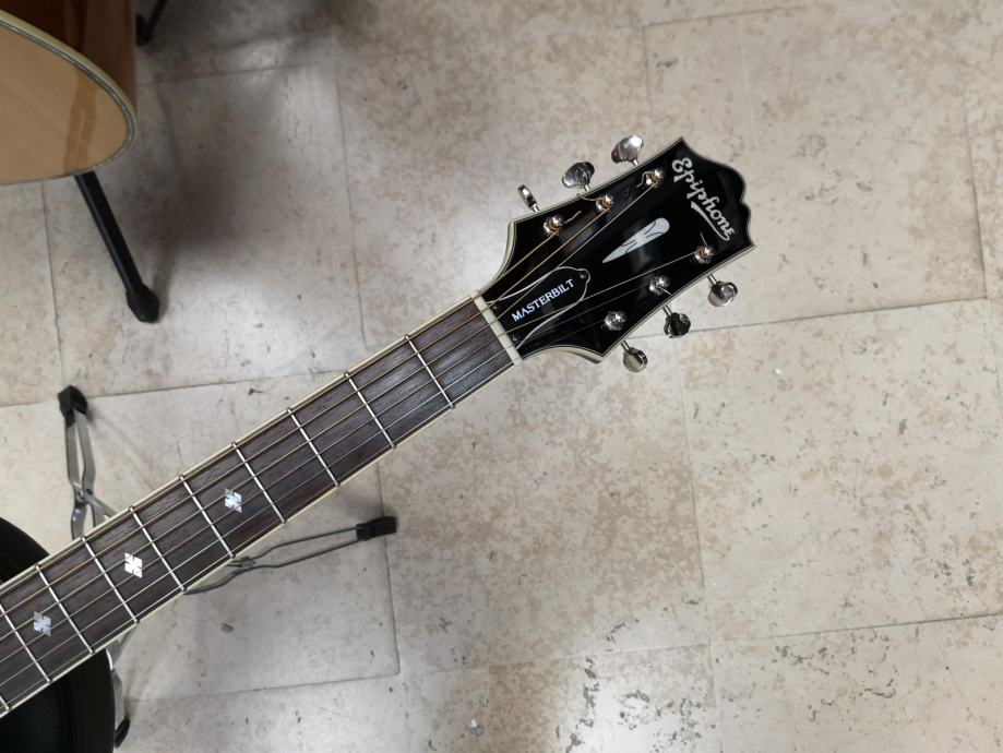 Epiphone Masterbilt DR-500MCE elektro-akustična gitara. Epiphone DR-500MCE gitara kombinacija je tradicionalne metode izrade i modernih karakteristika koje ovom Epiphone modelu daju moćan i bogat zvuk. Ako usporedite druge elektro-akustične gitare ovog cijenovnog ranga, uvidjet ćete kako je svaka usporedba sa Epiphobe DR-500MCE modelom, nesrazmjerna.
