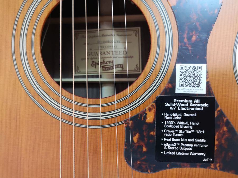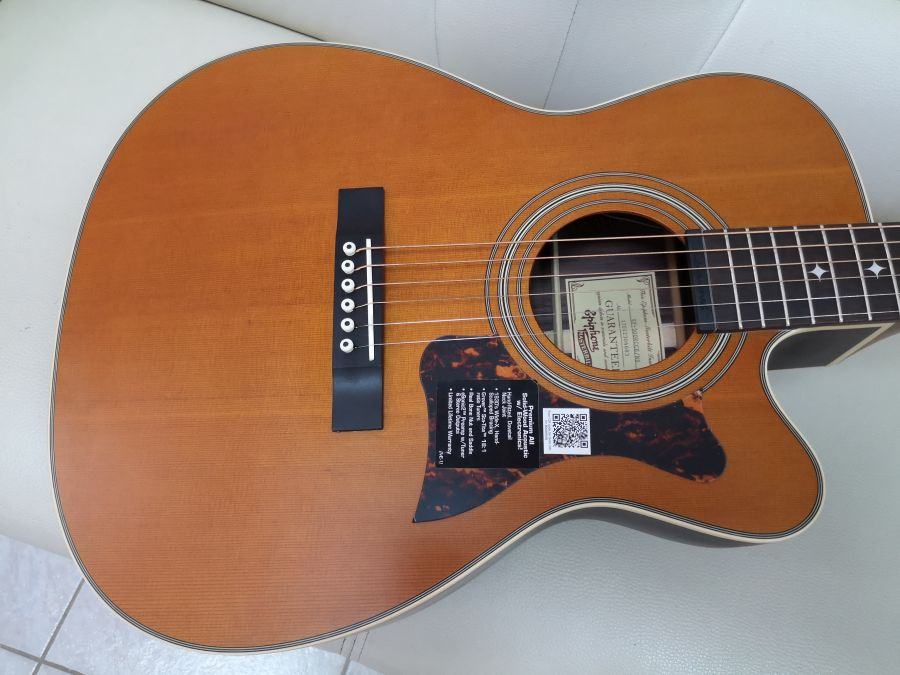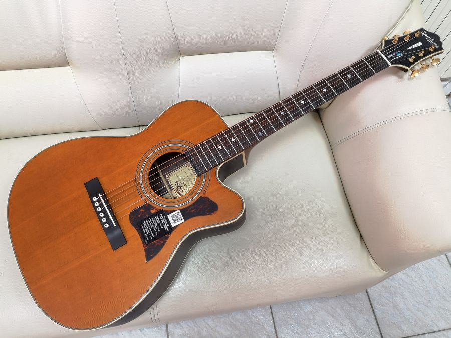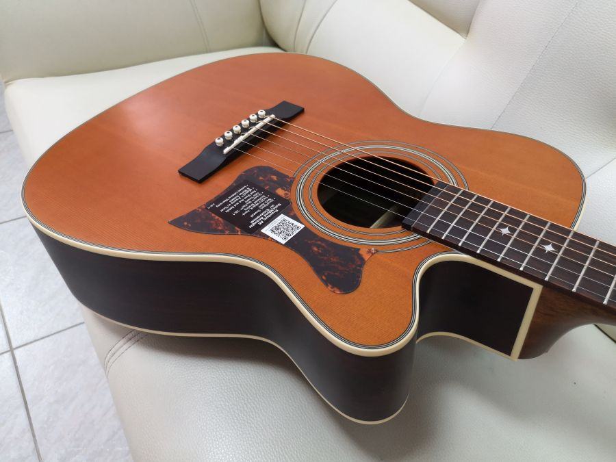 elektro-akustična gitara, iz Masterbilt serije, dolazi s PLEK setupom; Solid Cedar top, Shadow NanoMag™ pickup and eSonic™ preamp, Bone saddle and bone nut; Mahogany neck, 1-piece plus heel; gold Grover® Sta-Tite™ 18:1 ratio tuners. Jednom riječju - gitara koja će Vas doslovno ostaviti bez daha. Doslovno kao nova.