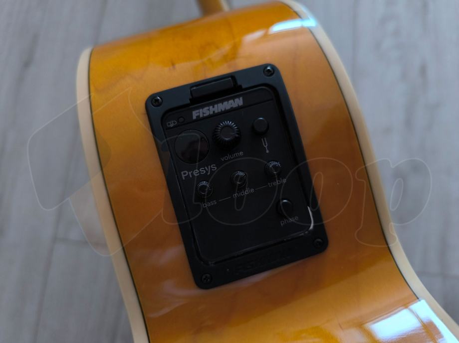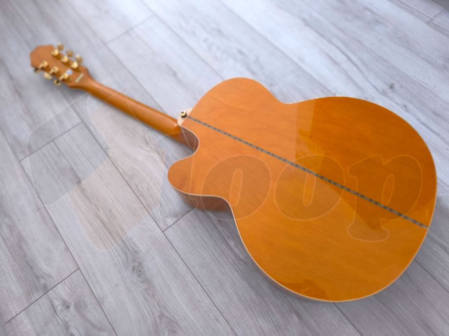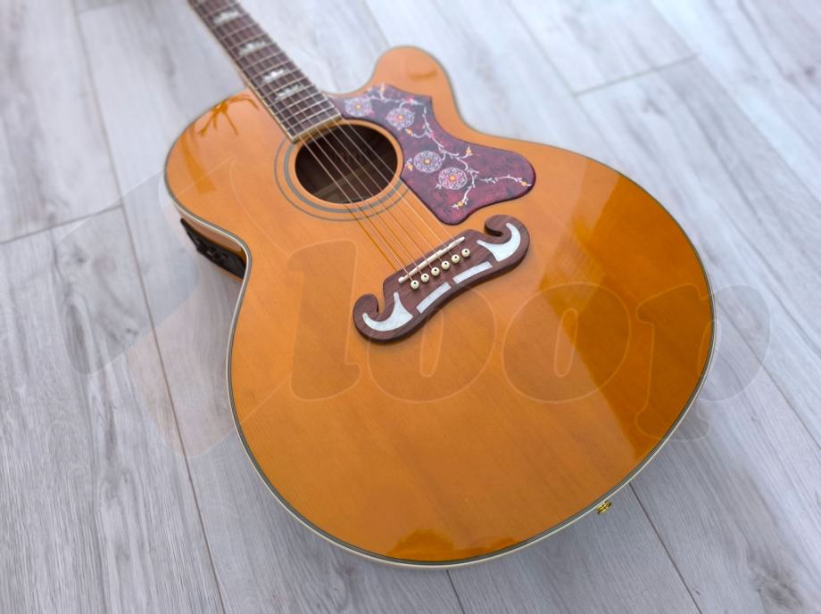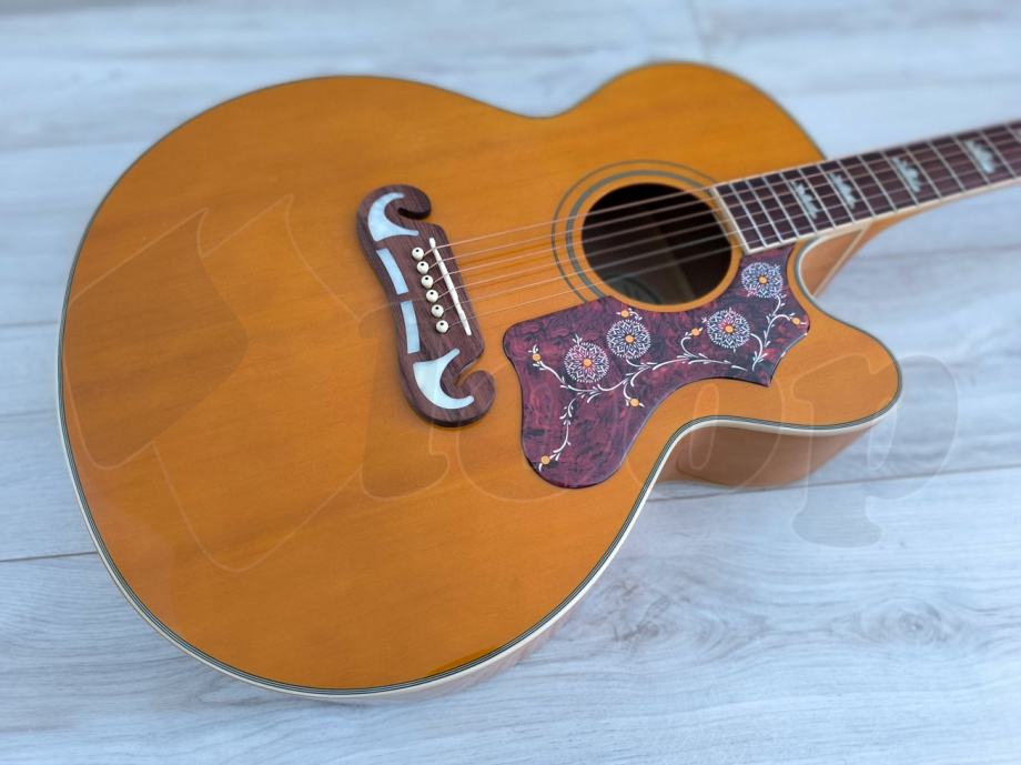Inspired by Gibson Epiphone ima cutaway Super Jumbo tijelo s odabranim stražnjim i bočnim stranama od javora, gornjim dijelom od čvrste smreke za izvanredan ton. Vrat od tvrdog javora s SlimTaper D profilom, pao ferro fretboardom, 20 medium jumbo pragova i elegantnim pearloid umetcima. Most ima legendarni oblik brkova, a pickguard ima kultnu grafiku J-200. Dolazi opremljen Fishman Sonicore pickupom ispod sedla i Presys pretpojačalom s ugrađenim tunerom.