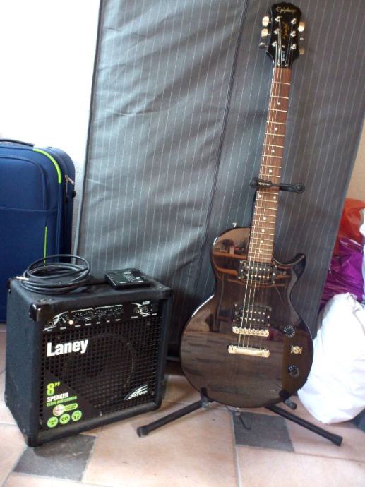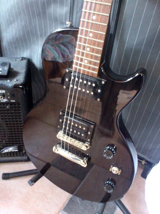 Prodajem električnu gitaru, Epiphone Les Paul Special 2 Ebony, u odličnom je stanju, stara 4 godine, očuvana bez ogrebotina i udubljenja. Ide skupa u kompletu sa pojačalom Laney LX20 koje je staro 2 godine, stalkom za gitaru, pojasom, štimerom, kabelom te 50-ak trzalica