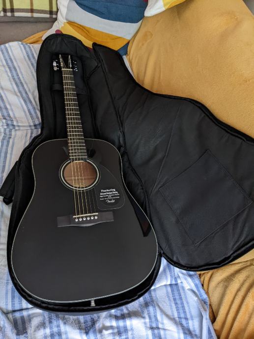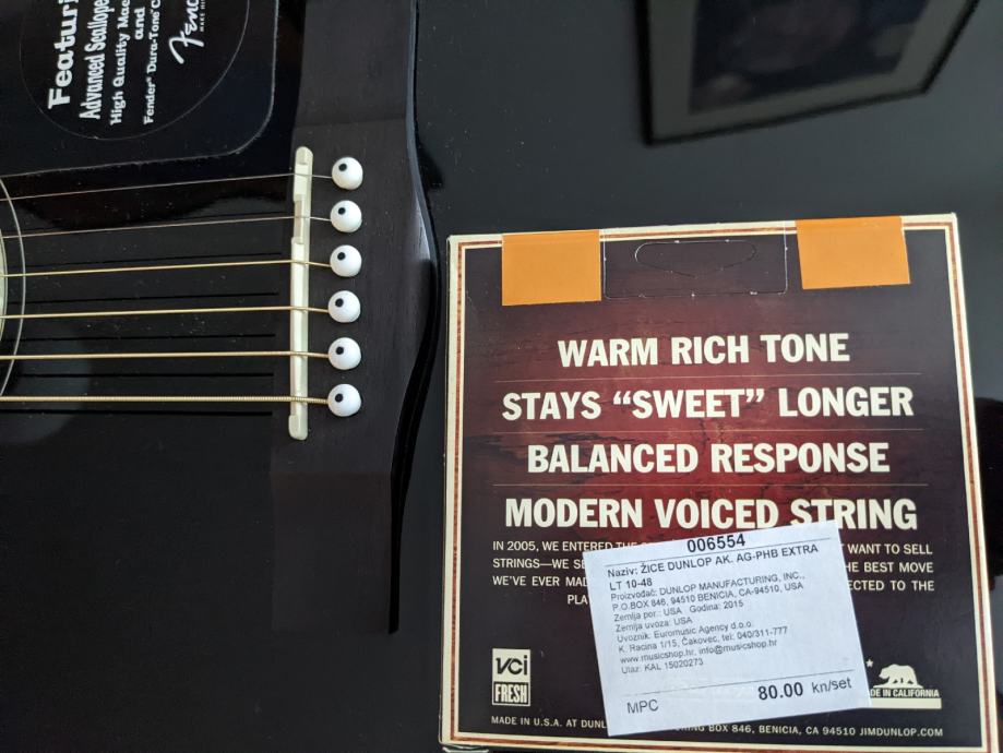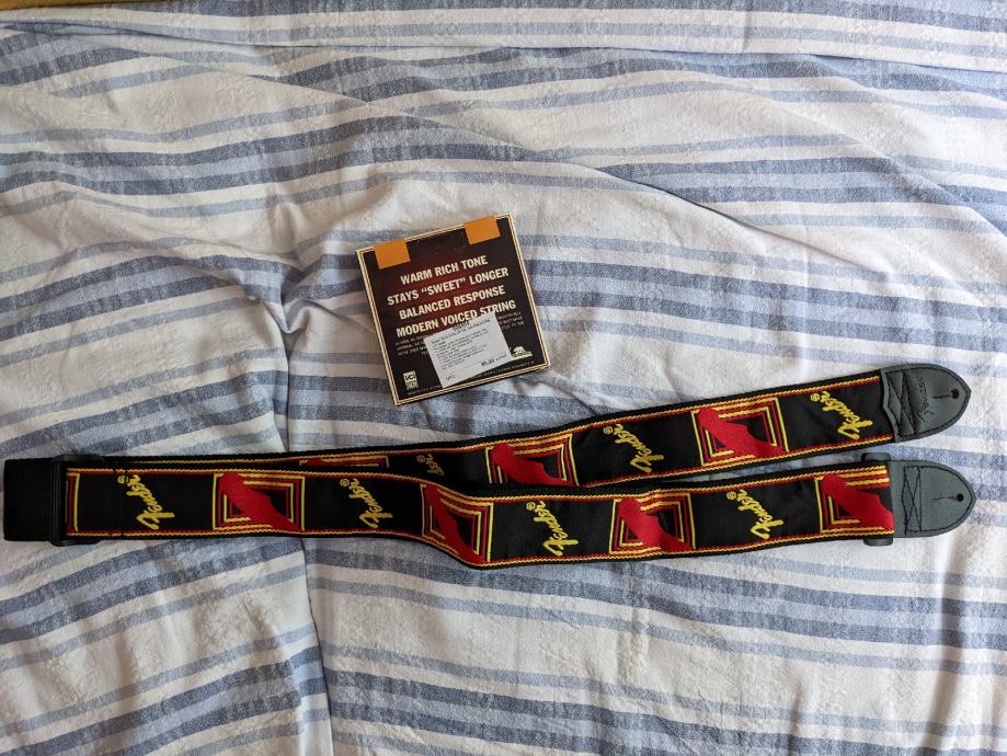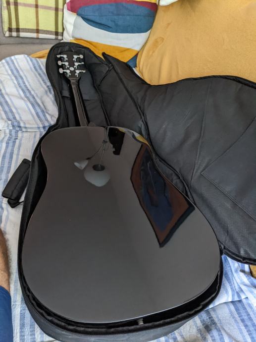 Dolazi sa dodatnim nekoristenim zicama, coverom za nosenje i remenom za gitaru