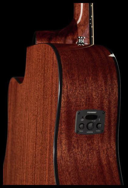 Shape: Classic Design Dreadnought with cutaway; Top: Spruce, solid; Scalloped X-Bracing; Back and sides: Mahogany (Swietenia macrophylla); Neck: Mahogany (Swietenia macrophylla); Fretboard: Rosewood (Dalbergia latifolia); 20 Frets; Nut width: 43 mm; Scale: 643 mm; Chrome hardware; Pickups: Fishman CD Electronics; Colour: Natural.