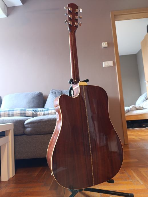 Gitara je u dobrom stanju, bez nekakvih većih oštećenja, ima nisku akciju za akustičnu gitaru, odlično se svira, dobro drži štim.