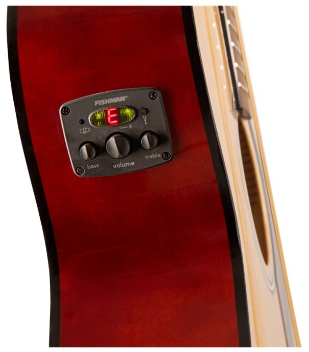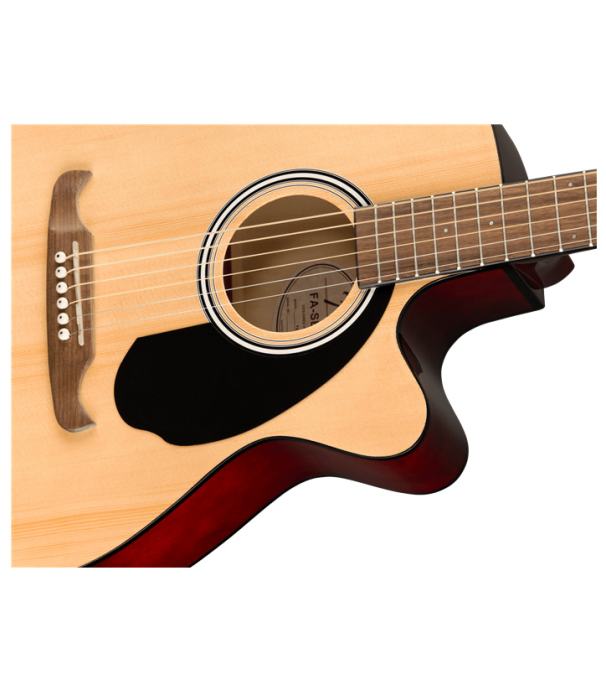 Single-cutaway FA-135CE elektro-akustična gitara kombinira Fender ton i stil s Fishman® elektronikom za gitaru koja je napravljena da izađe na pozornicu. Kvalitetna laminatna konstrukcija (gornja ploča je od laminirane smreke a donja i bočne su od laminirane lipe) s modernom Fender 3+3 glavom i Viking mostom stvaraju instrument izvrsnog zvuka koji je jednostavan za sviranje. Početnici i gitaristi studenti će cijeniti vrat od nato drva koji gitari daje živahan ton i glatki, lagani osjećaj sviranja. Prstohvat i most su od oraha.