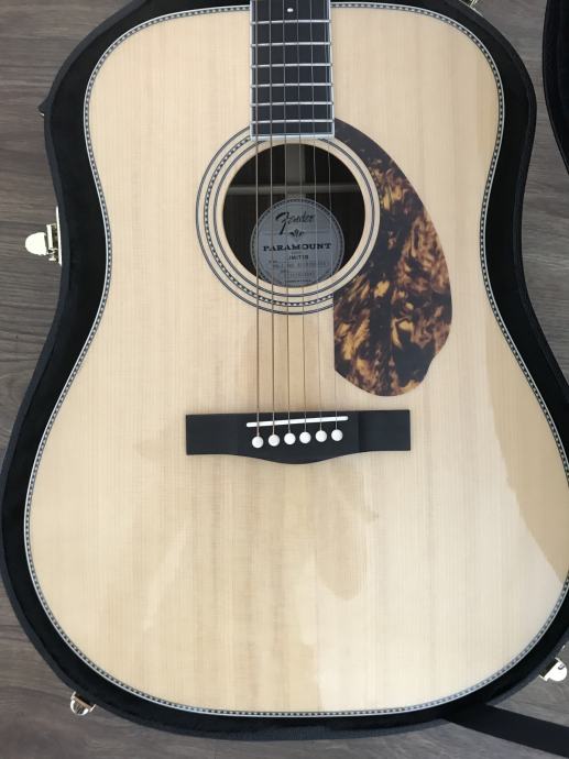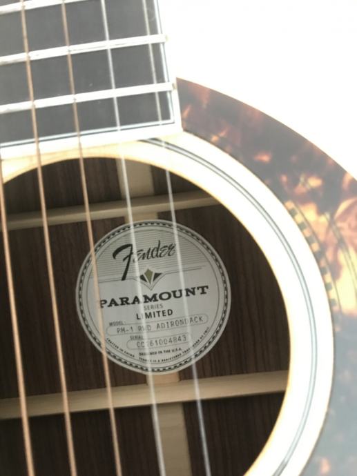 Prodajem malo korištenu elektro-akustičnu gitaru Fender Paramount PM-1 Limited Edition Adirondack. Gitara je limitirana, proizvodila se samo 2016. godine. Tijelo je od afričkom mahagonija dok je gornja ploča od AA Adirondack smreke, cijela gitara je od punog drva (all-solid), vrat je od mahagonija s prstohvatom od rosewood-a, oblik tijela je dreadnought, dolazi s kvalitetnim Fender koferom. Elektronika je Fishman.