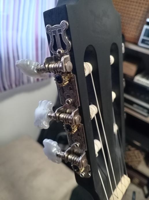 Prodajem očuvanu klasičnu akustičnu gitaru Flight C100 BK 4/4 , ko nova , mat crna , sa Flight torbom za nošenje na ramenu , Flight štimer , nove rezervne metalne žice (na njoj su klasične ) , ključ . Šipka u vratu . Dužina gitare 100 cm , boja: crna , prednja ploča: smreka , stražnja ploča: mahagonij , finiš: saten black , vrat: javor , fretboard: Kabukalli wood , broj pragova: 19 , širina nuta: 52 mm , skala: 650 mm , hardware: krom , žice: Daddario EJ45 .