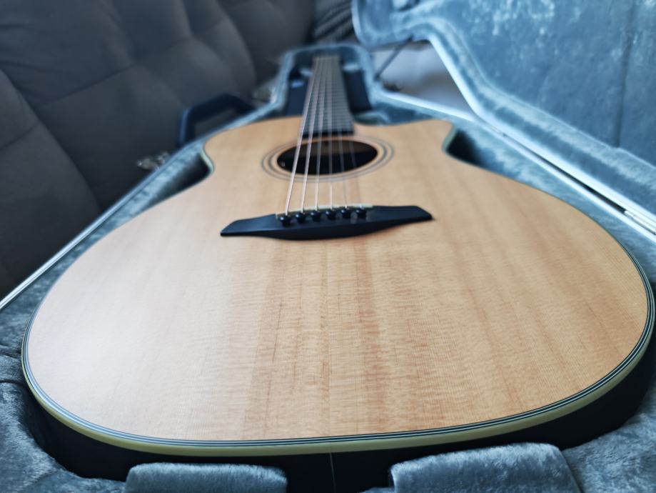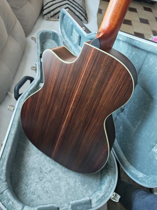 Satin/mat finish omogućuje bolju rezonantnost tijela, gornja ploča je solid Sitka a bočne i zadnja strana su solid Rosewood. Kofer je naravno uključen u cijenu.