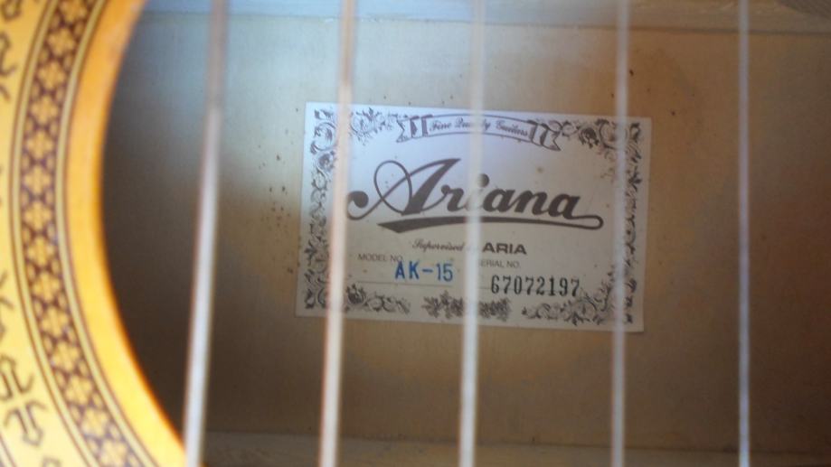 Prodajem gitaru ARIANA AK-15 u dobrom stanju,kvalitetnog zvuka.Duljina gitare je 100 cm.a dimenzije korpusa su: 48X36 cm.