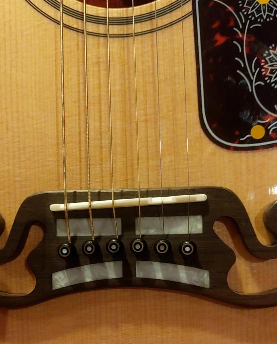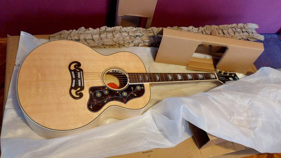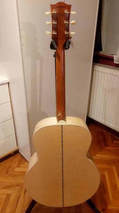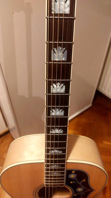 Gitara je vrhunska, besprijekorna tonski, tehnički i vizuelno. Savršena kopija Gibson SJ-200 Standard. Nema razlike. Među fotografijama pogledajte i video snimak. Sound divan i bogat. Odlično drvo. Elektro-akustična, ima unutrašnji pickup. Sve je top do najsitnijih detalja uključujući i Gibsonove mašinice. Made in USA. Serijski broj. Ultimativna izrada 10/10. Vrijedi pogledati.