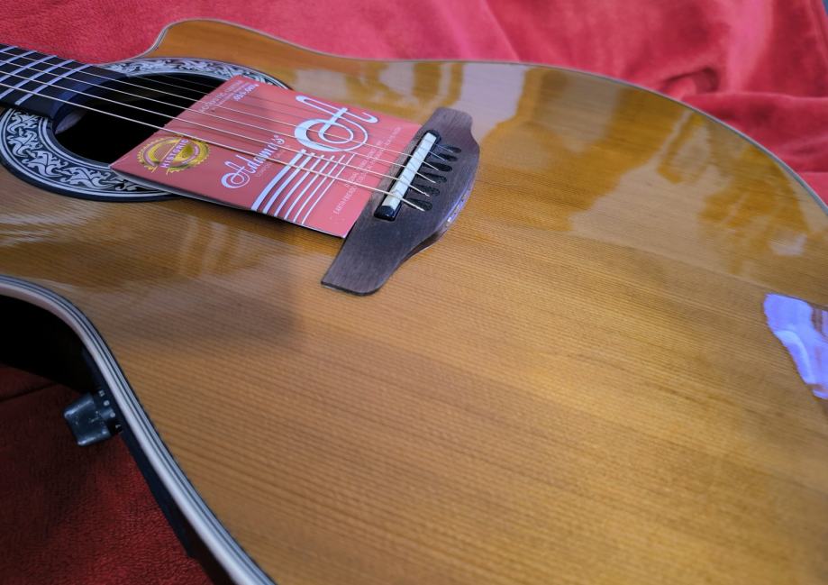 Prodajem očuvanu Ovation Baladeer 1861, shalow (tanka zdjela), 1984 godina, profi gitaru za gažere, idealna kome smeta veliki trbuh, ima nekoliko nepravilnih risova u laku - ne na drvetu, ravan vrat, niske žice, GigBag, broj 33x xxx, bez zamjene