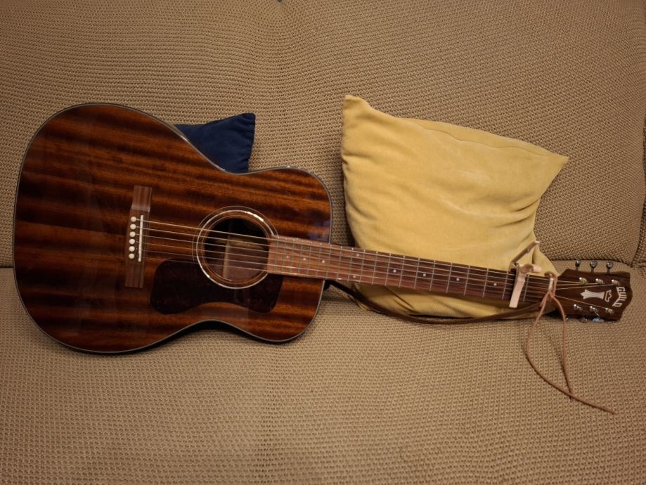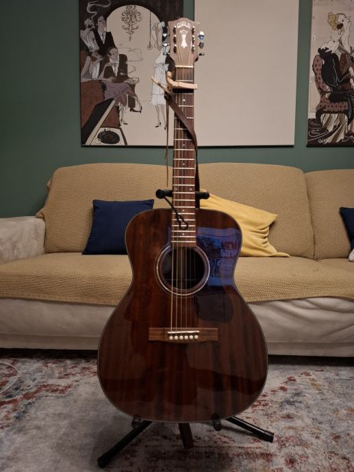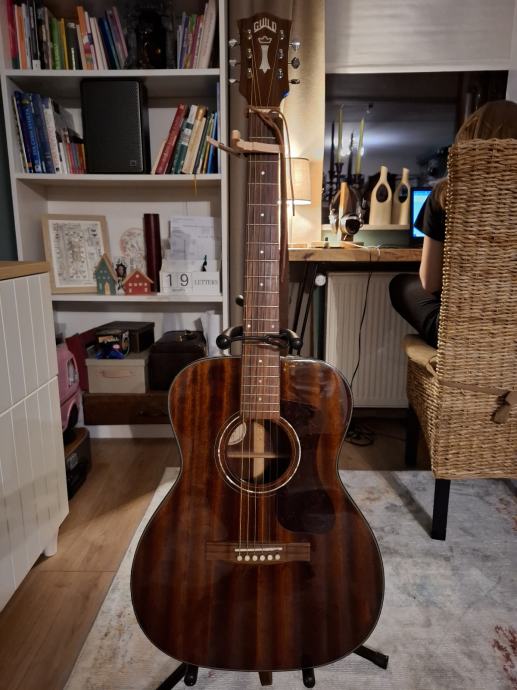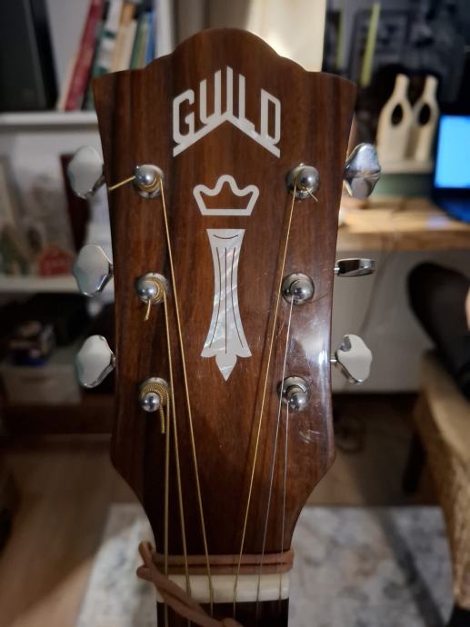 Guild OM 120 akustična gitara stara par godina. Orchestra veličina tijela, manja od dreadnought a veća od parlor gitara. Prikladna za strumming i fingerpicking. Korštena isključivo u kući. Ugrađen K & K pure mini transducer pickup. Dolazi sa originalnim Guild soft caseom.