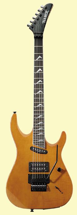 Dakle, prodajem Hamer Californian 27fret Deluxe gitaru. Gitara je u odličnom stanju. Kupljena je za 3000kn sa greškom na floyd roseu. Floyd rose je sad zamjenjen (srebrni,licenced) tako da nema više niti jedne greške. Ovaj model se prestao proizvoditi još početkom 90ih godina. Elektronika je H-S Duncan designed. Gitara nudi 27polja! koja su vrlo pristupačna radi odličnog veoma tankog i brzog vrata. Nažalost nemam boljih i novijih slika, pa sam stavio jednu s interneta :(