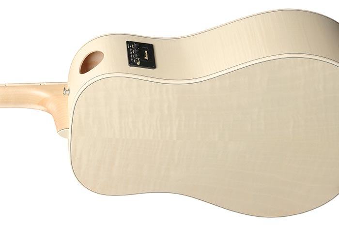Ibanez AAD77M1E-OAW elektro akustična gitara. Ibanez AAD77M1E-OAW Open Pore Antique White kombinira snažan akustični zvuk s modernom prikladnošću za pozornicu i upečatljivim dizajnom. Kao dreadnought akustična gitara, pruža asertivan volumen zvuka s bogatim basovima i jasnim odzivom. Atraktivan dizajn naglašava njezin visokokvalitetni karakter i čini je privlačnom za poglede. Nadalje, instrument proizvodi živahan ton zahvaljujući čvrstoj gornjoj ploči, dok laminirano tijelo osigurava stabilnost i pouzdanost u svakodnevnoj upotrebi. Opremljena Ibanez pickupom uključujući predpojačalo, gitara je idealno pripremljena za pozornicu, probu ili snimanje.