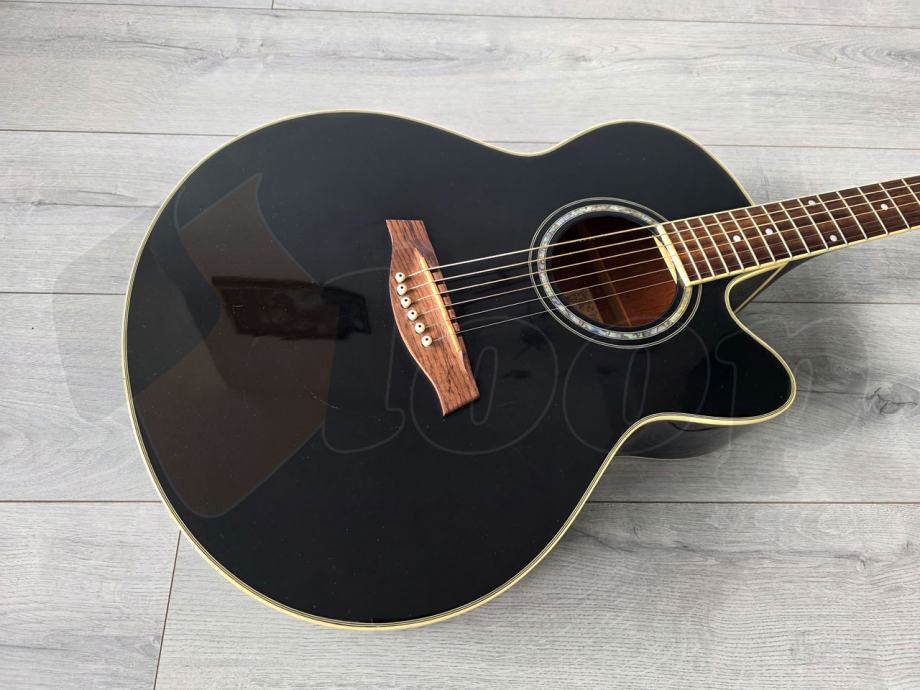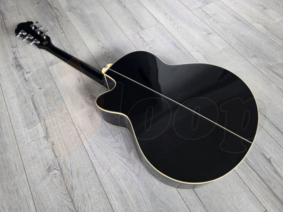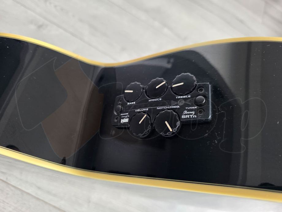 Single cutaway AEL body, spruce top, mahogany back and sides, mahogany neck, abalone body binding, abalone soundhole rosette, rosewood fingerboard with dot inlays Ibanez Ivorex II nut and saddle, Advantage bridge pins, SRTn Preamp with built-in tuner and notch filter to seek and dial away feedback
