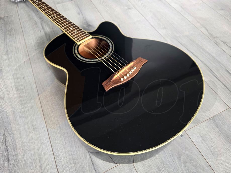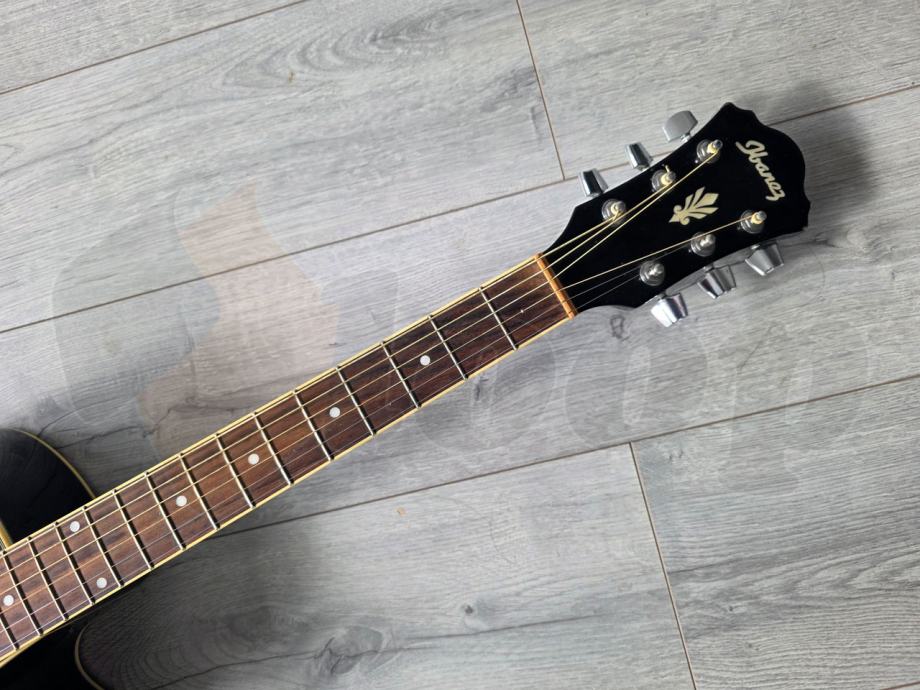 elektro-akustična gitara Ibanez AEL10E, s prednjom pločom od smreke, mahagonij stražnja i bočne stranice, Ibanez SRTn Preamp s ugrađenim štimerom.