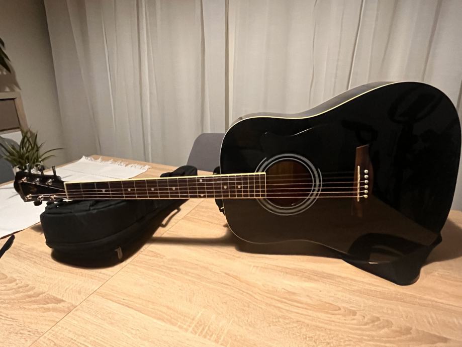 Prodajem dreadnought akustičnu gitaru Ibanez V50 crna u odličnom stanju. Uz gitaru ide kupljena torba (nije navlaka), elektronski štimer, trzalice i remen, na gitari su žice Martin&co fosfor-bronca.