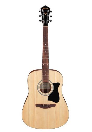 Ibanez V40OPN akustična gitara. Ibanez V40 izvrstan je izbor za gitariste početnike. Ova akustična gitara ima klasičan izgled, odličan zvuk i jednostavnu svirljivost. Gornja ploča je od smreke, donja ploča i bočne strane su od meranti drveta, nyatoh vrat i hvataljka s 20 pragova. Oblik tijela dreadnought proizvodi čist, uravnotežen ton. Prirodna završna obrada s otvorenim porama daje joj fantastičan izgled. Lagana je, udobna za sviranje i zvuči fantastično! Uz Ibanez V40OPN, svidjet će vam se učenje gitare.