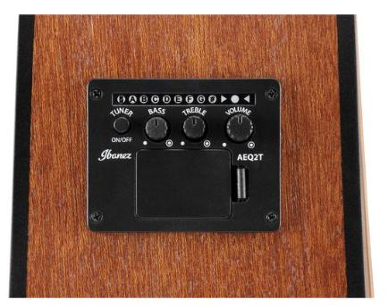 Ibanez V40CE OPN elektro akustična gitara. Ibanez V40CE-OPN elektroakustična gitara dio je Ibanezove Jampack serije, dizajnirane za početnike i opremljene svim dodacima koji su vam potrebni za početak. Ibanez V-40CE pruža bogat, rezonantan zvuk iz svog udobno svirajućeg Dreadnought Cutaway tijela. Izrađena je s Nandu Wood pragom, smrekovom gornjom pločom i Meranti tijelom. Ovo drvo, poznato po svojim tonalnim svojstvima, osigurava da sa svakim udarcem uhvatite bit zvuka kojem težite. Ibanez Undersaddle Pickup, besprijekorno integriran s Meranti tijelom, vjerno reproducira nijanse vašeg sviranja, pružajući autentično akustično iskustvo. Srce Ibanez V40CE OPN je Ibanez AEQ-2T sustav pretpojačala, s ugrađenim tunerom koji jamči da je vaša gitara uvijek uštimana, intuitivnim pretpojačalom s kontrolama basa i visokih tonova, te glavnom glasnoćom. Nandu Wood most s Ibanez Advantage pinovima pruža optimalan prijenos vibracija žica i jednostavnu mogućnost mijenjanja žica. Ova kombinacija visokokvalitetnih komponenti osigurava tonski integritet i stabilnost vašeg instrumenta, čineći Ibanez V40-CE gitaru vrhunskom gitarom za vježbu i nastupe.