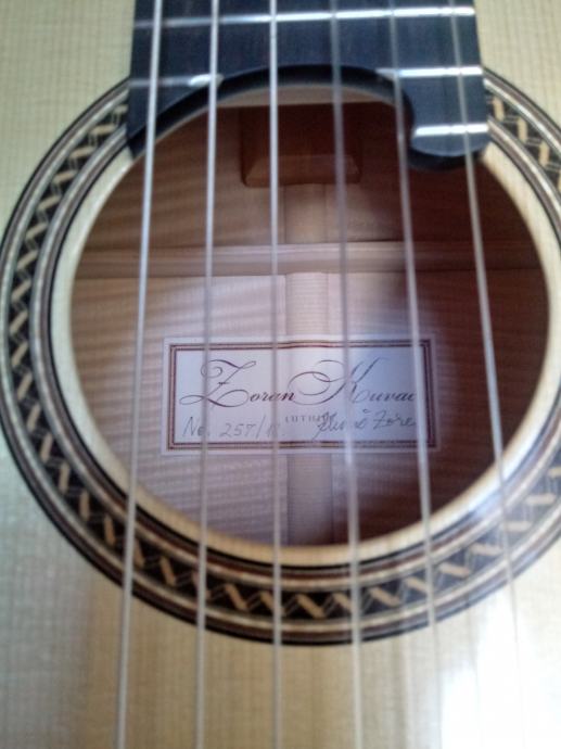Nova u savršenom stanju, 2018. godina, izradio Zoran Kuvač, prednja ploča smreka, strane i zadnja ploča javor. Gitaru možete čuti na adresi: https://www.guitarsalon.com/store/p5459-zoran-kuvac.html