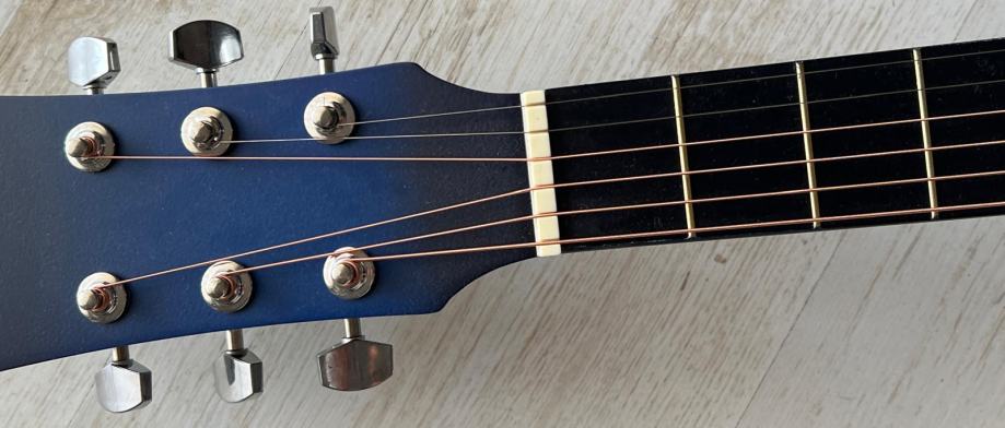 Ova gitara napravljena je od masivnog drva lipe s metalnim mašinicama te MAT završetkom plave boje.