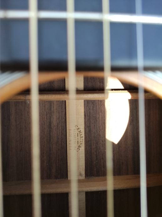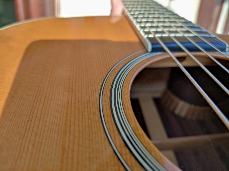 Solid Sitka spruce soundboard with hybrid scalloped bracing