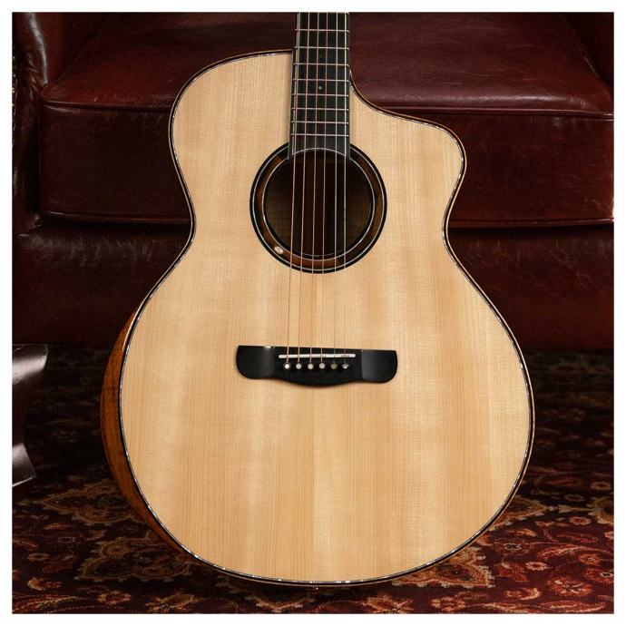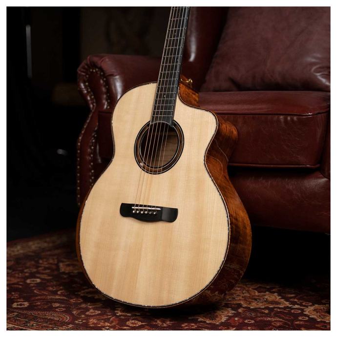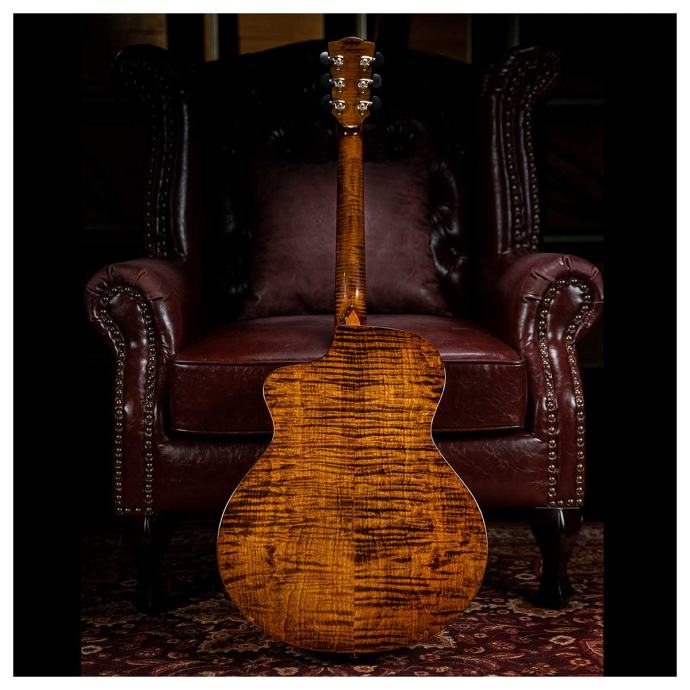 Elektro-akustična gitara Grand Concert oblika s punom prednjom pločom od masivne Europske smreke, tijelom od plamenog masivnog javora i Fishman Presys Blend elektronikom.