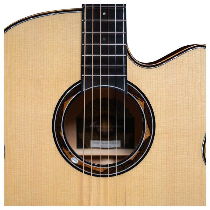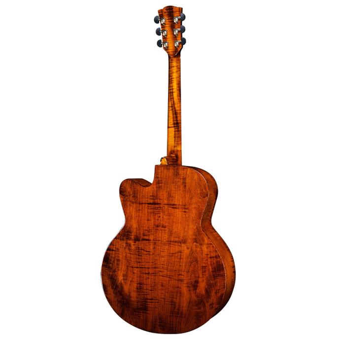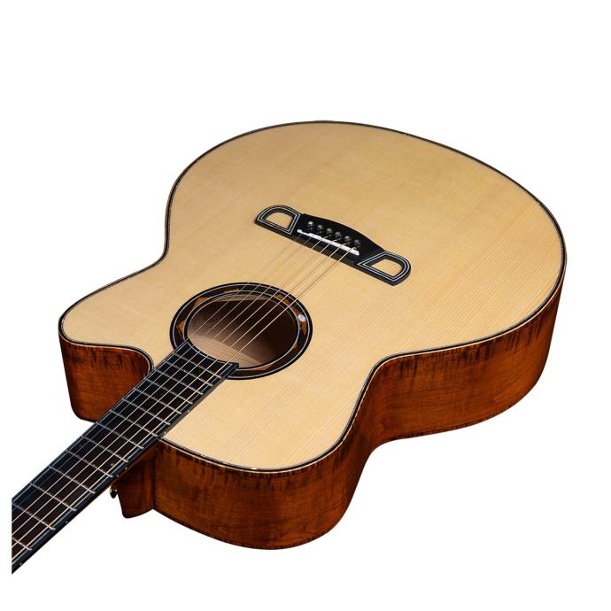 Akustična gitara jumbo oblika s punom prednjom pločom od masivne Europske smreke i tijelom od plamenog masivnog javora.