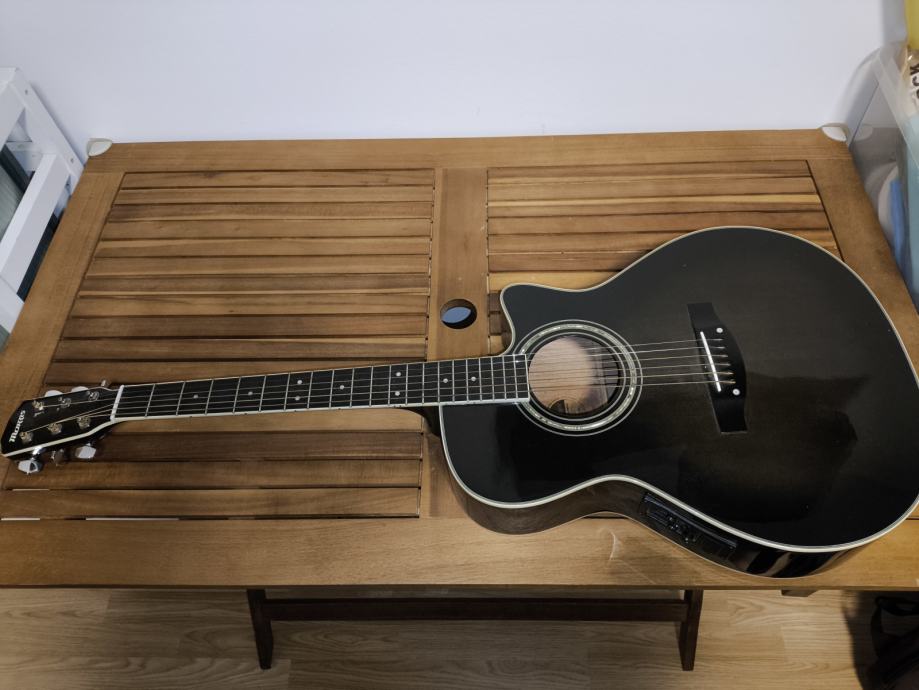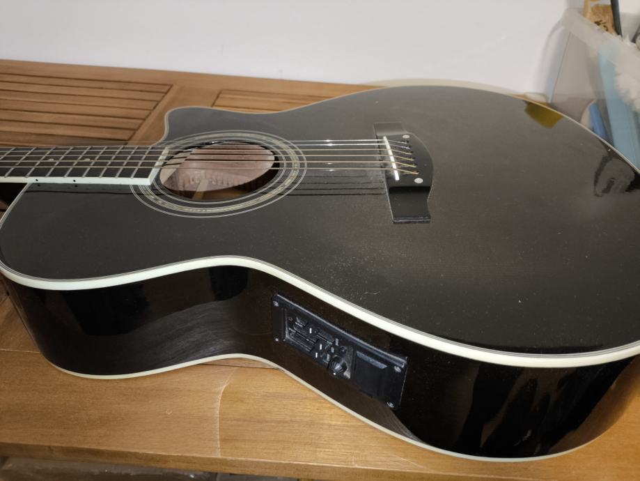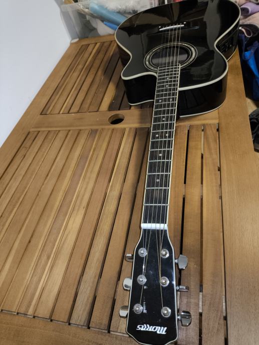 Morris elektro-akustična gitara i tvrdi kofer.