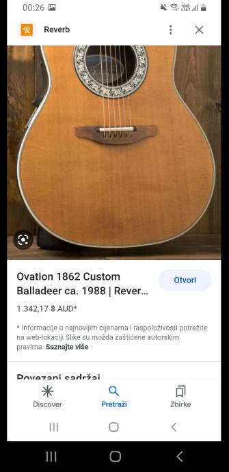 Ovation custom ballader iz 88.god... sa original koferom....ocuvana u odlicnom stsnju....original usa sa malim trbuhom...ne moze zamjena za stratocaster ili telecaster... gibson ili prs