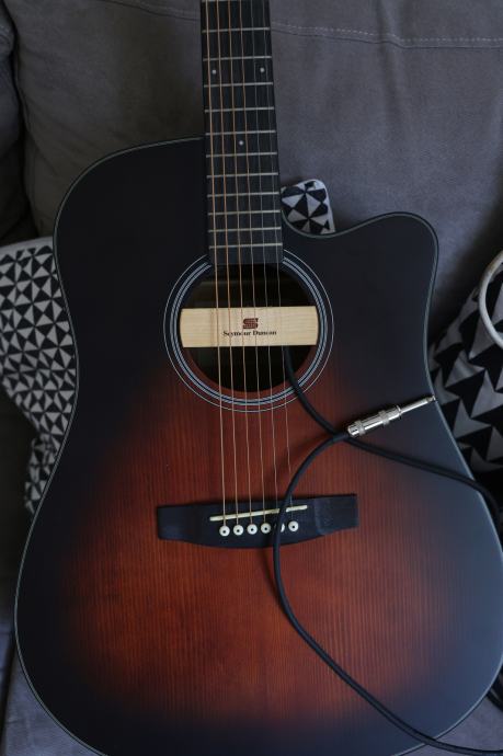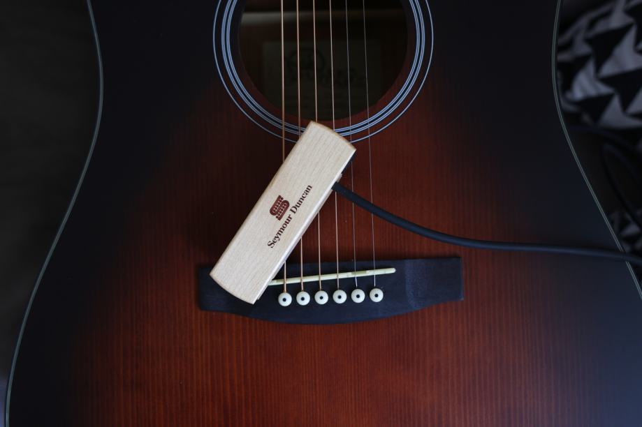 Seymour Duncan PickUp koji će akustičnu gitaru pretvoriti u elektro akustičnu. Ugradnja je jednostavna, samo se postavi ispod žica. PickUp je nov, jednom korišten. Ne šaljem poštom. Gitara s fotografije nije na prodaju.