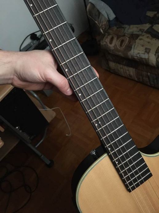 Ima manje oštećenje na stražnjoj strani gitare koje ne utječe na zvuk gitare.