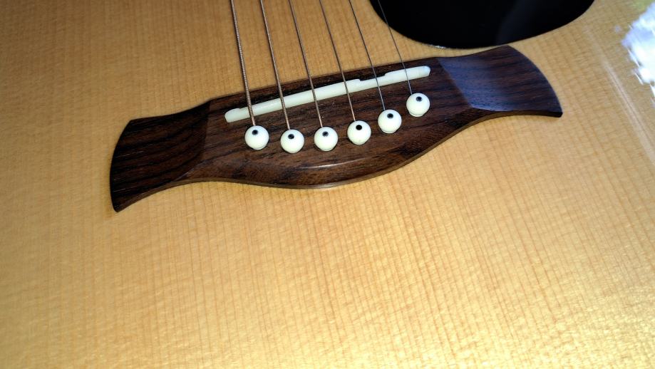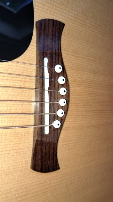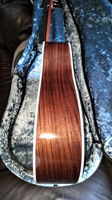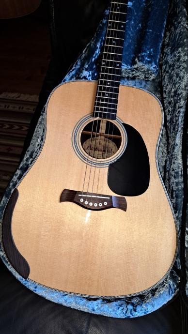 Gitara kupljena 10.02.2025. prodaja, začudo imam preveć gitara. Gitara je setapirana i poštelana, malo svirana po doma tek da se malo usvira. Gitara je kineska, ali vrlo kvalitetne izrade u stilu HD-28, poleđina i stranice lamelirani rosewood, ostalo sve puno drvo.