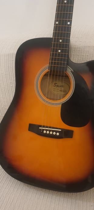 Prodajem elektro akustična gitaru SQUIER by FENDER model SA105CE. Gitara ima Fisman elektroniku sa ugrađenim štimerom, dobar zvuk i tanak vrat. Uz gitaru dajem i torbu. Cijena je 120 eura. Može se pogledati i probati u Varaždinu ili Čakovcu. Ne šaljem pouzećem!